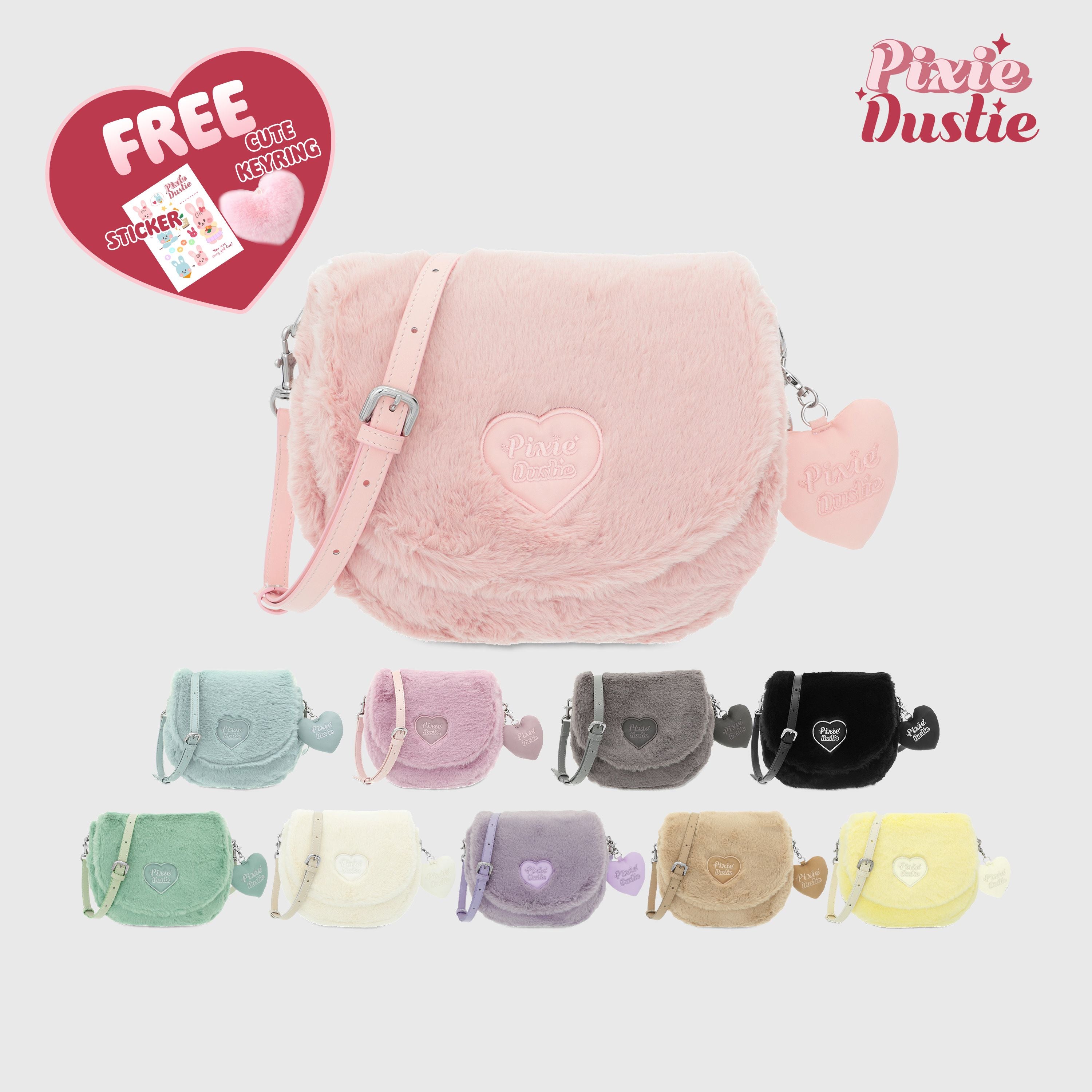 ในโลกแห่งเวทมนตร์ พิกซี่ตัวน้อยทิ้งร่องรอยของผงพิกซี่ที่เปลี่ยนความฝันให้เป็นจริง เมื่อผงพิกซี่กระทบลงบนสิ่งใด สิ่งนั้นจะกลายเป็นสิ่งพิเศษและมีชีวิตชีวา ด้วยแรงบันดาลใจจากเรื่องราวนี้ กระเป๋าสะพายข้าง Pixie Dustie ถูกออกแบบด้วยขนนุ่มนิ่มสัมผัสอ่อนโยนดุจปีกพิกซี่ โลโก้ปักนูนรูปหัวใจที่ฝาปิดด้านหน้าสะท้อนถึงพลังแห่งเวทมนตร์ที่แฝงอยู่ในทุกวัน