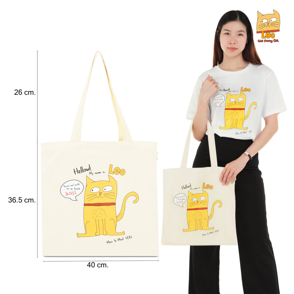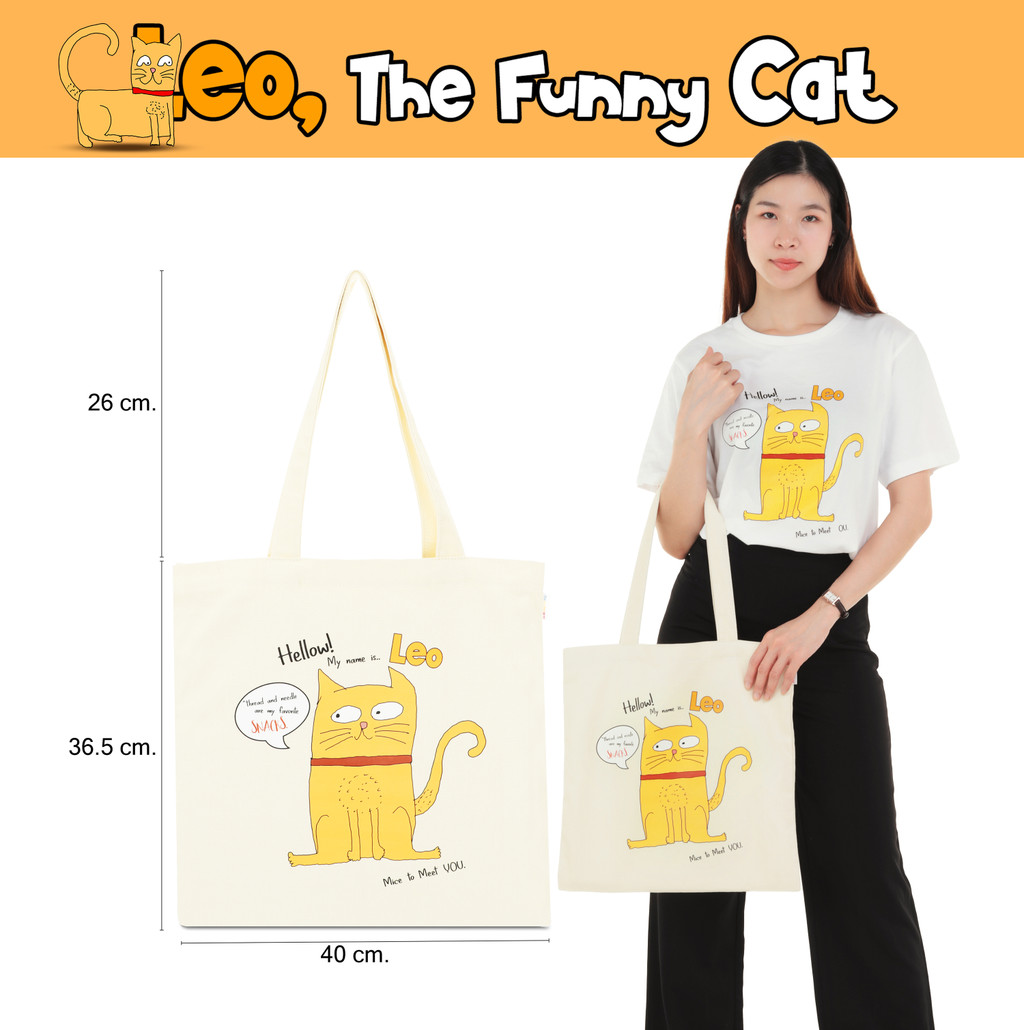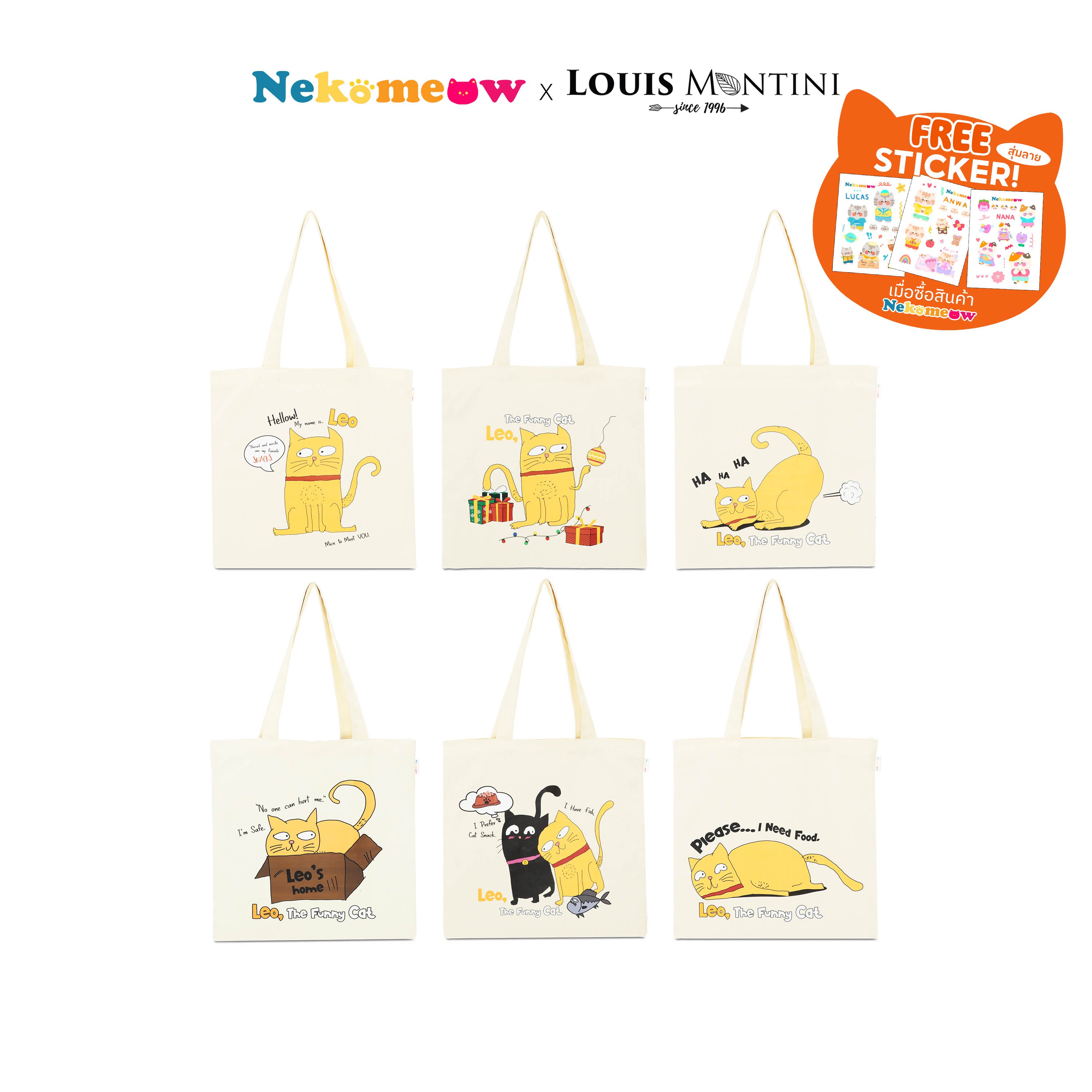 Louis Montini (Leo the Funny Cat) กระเป๋า Tote ถุงผ้าช้อปปิ้ง ผ้าแคนวาส NEKO-CVR009