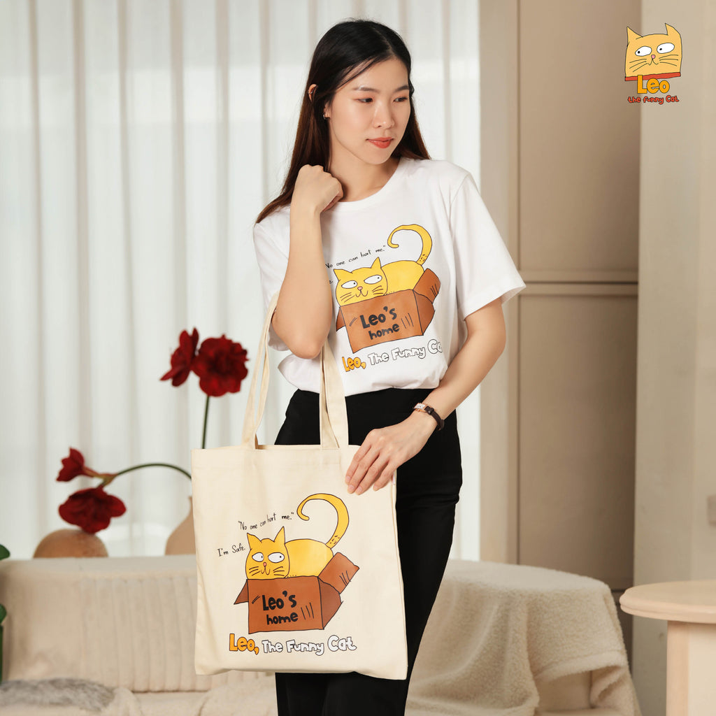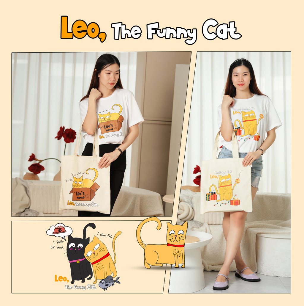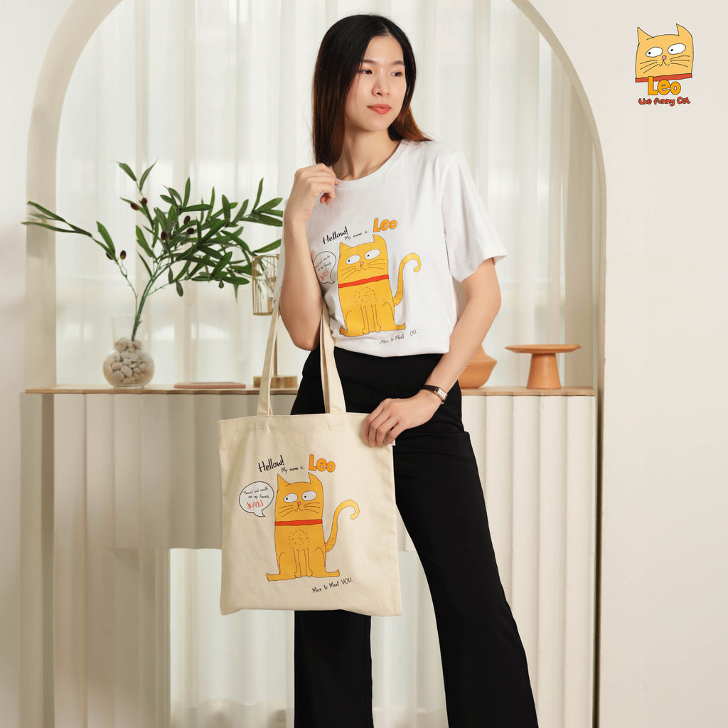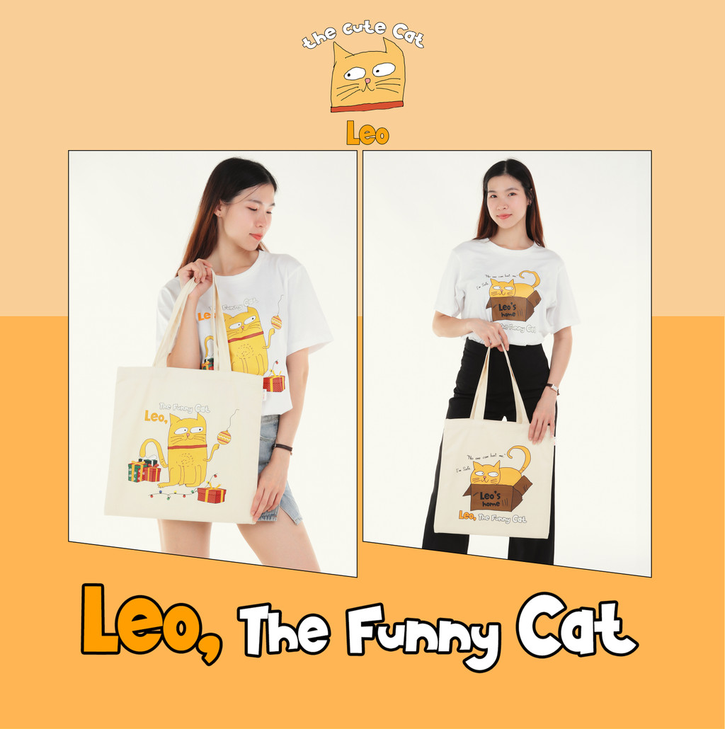 Louis Montini (Leo the Funny Cat) กระเป๋า Tote ถุงผ้าช้อปปิ้ง ผ้าแคนวาส NEKO-CVR009