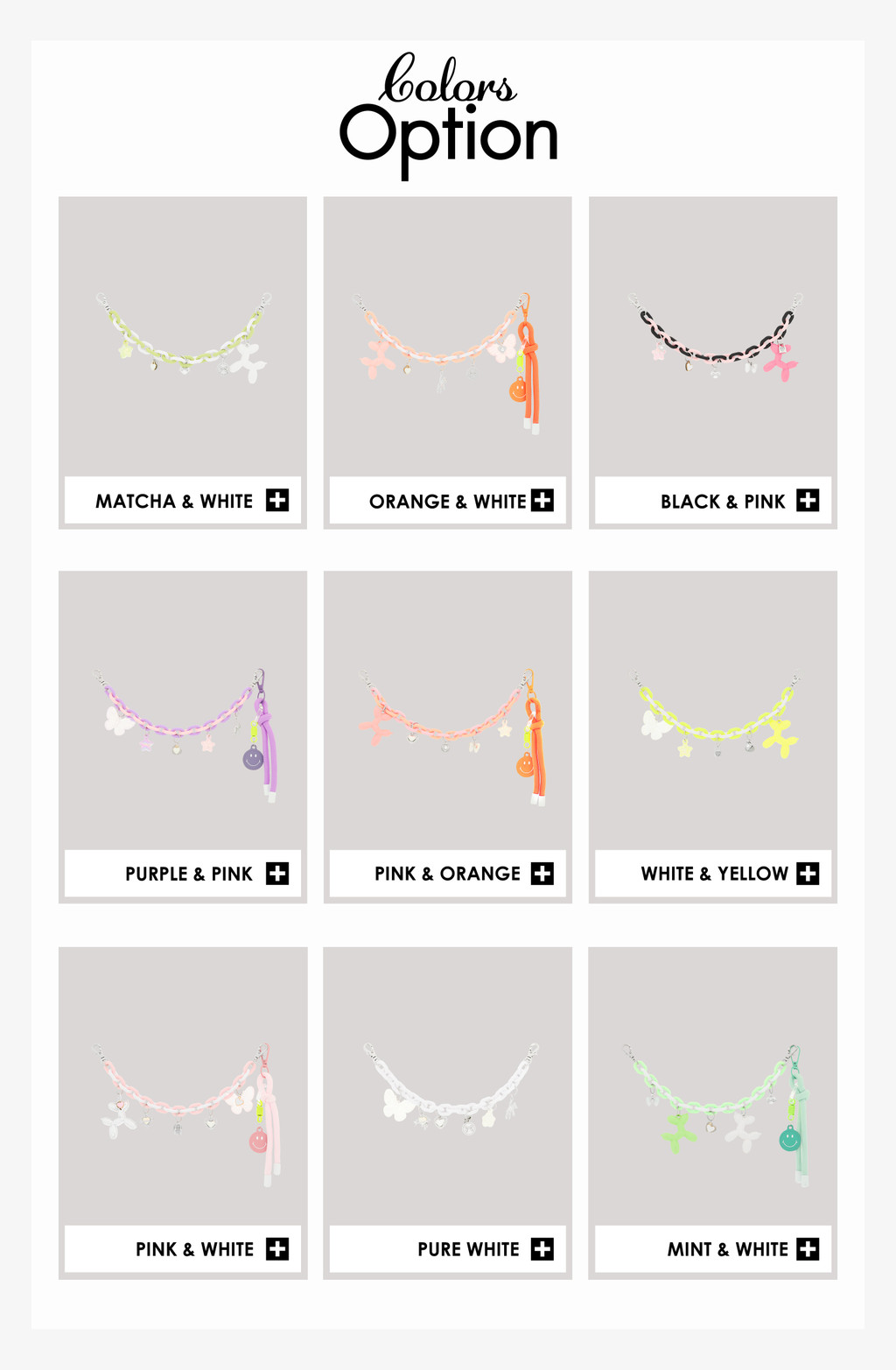 คอลเลกชันนี้มาพร้อมโซ่พลาสติกสีพาสเทลจับคู่สีสุดเก๋ และชาร์มจี้รูปผีเสื้อ ดวงดาว ลูกโป่งรูปน้องหมา หัวใจ และอื่น ๆ อีกมากมายที่สามารถ Mix & Match ได้ไม่รู้จบ!